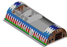 拱形屋頂采用先進設備和優質彩涂卷板,通過現場成型技術,實現大跨度結構,廣泛應用于糧庫、廠房、市場等多種建筑,具有施工周期短和空間利用率高的特點。