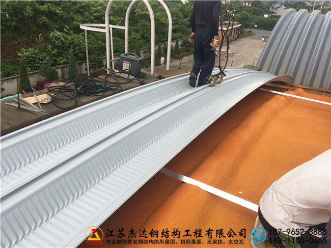 設備出板環節是施工中的重要環節,所有部件均經過嚴格檢測。組裝過程采用科學流程,保證瓦片精準拼接,提升整體結構穩定性。無梁拱設計提升了屋頂的承重能力,且減輕自重,利于長期使用。